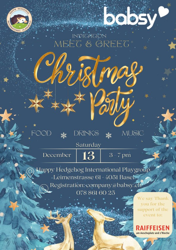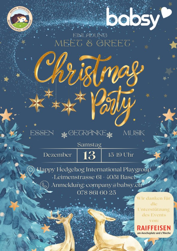 Wir freuen uns schon sehr auf unser Weihnachts-Meet & Greet am 13. Dezember 2025! Es wird ein wunderbarer Anlass, um das Jahr gemeinsam ausklingen zu lassen, sich auszutauschen und auf unsere Erfolge anzustoßen. Sehen wir uns am 13. Dezember bei Happy Hedgehog - International Playgroup in Basel? Wir können es kaum erwarten! HIER geht’s zur Anmeldung: https://forms.office.com/e/uA5RSNCCZc