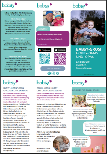 We are very happy about the completion of our Babsy Grosi flyer and would like to thank ICI from Migros very much! Thanks to your support, we were able to implement our idea with a lot of heart and soul and professionalism. The flyer shows in a wonderful way what Babsy-Grosis achieve and how important their commitment is for families. We really appreciate your creative guidance and commitment to social projects – thank you for making our vision visible! Über die Mini-Grants | «ici. gemeinsam hier.»